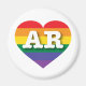 This magnet features a heart with a rainbow pride design and the bold, white, capital letters AR, the official abbreviation for Arkansas, the natural state. Show your true colors, support marriage equality, and celebrate gay pride.