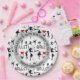 A seamless pattern I love ballet. A red heart shape instead of the word "Love". White colour ballet dancers. Black colour ballerina to the front. The positive paper plate for any occasion. Customizable. You can change two template texts independently. If you want to SWITCH OFF/ON a round ring or both of them, or change something, do the following: click the "Personalize" or the "Edit Design" (as the case may be) button of the blue colour to the right of the product image. It will transfer you to the "Designer Tool" window. Click the "Layers" menu to the left, choose "Oval", click the small eye icon. You can switch on/off everything, add more text, geometric elements, change the colour of the background, change fonts, and do whatever you want. Just be creative and be happy!