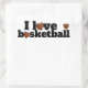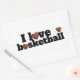 I love basketball sticker has bold black text on a clean white background with basketball hearts.