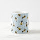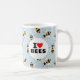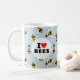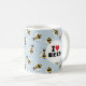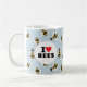 For the budding apiarist, avid gardener, or friendly neighbourhood entomologist, this mug shows a passion for pollinators with the classic "I Heart Bees" text on a white circle over a pattern of illustrated and friendly looking bees on a soft sky blue background.