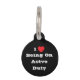 Pet ID Identification Tag For Cats And Dogs with Black Background Colour and White Lettering Colour printed with customizable template text phrase I ♥️ love Being On Active Duty on Hats, Shirts and Pet Products by TheFabricSeal print on demand shop at Zazzle.com #ZazzleMade https://www.zazzle.com/store/thefabricseal