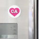 This magnet features a vibrant hot pink heart containing the bold, white, upper case letters CA, the official abbreviation for California, the golden state.