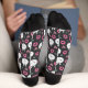 A Cute Black Pair Of Crew Sock Designed With Pink Hearts And White Cat Faces