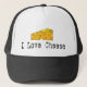 Vector illustration of this nifty hunk of cheese with the words "I Love Cheese" under it. Printed on this awesome trucker style hat. It's cheesy, funny, and geeky completely amazing!