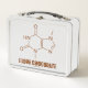 If you love chocolate, you'll enjoy this metal lunch box featuring the chemical molecule theobromine, the active ingredient that makes chocolate what it is, along with the following caption in Love Letters font: "I Love Chocolate". Make others do a double-take at your love of chocolate from a chemist's perspective at your next meal with this metal lunchbox!