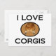 A cute round circle featuring a photograph of a cute little corgi bunny butt and her legs outstretched behind her with the words I LOVE CORGIS. Corgi owners, mom and dads alike will like this pretty corgi gift.