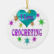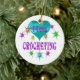 Share your love for crocheting with this shiny, colourful design with a blue heart, stars, and the words - I Love Crocheting.