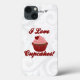 Cute red and pink design features a yummy chocolate cupcake in a pink paper wrapper, with pink icing and a red heart candy pick.  Text says "I love cupcakes". Perfect for the cupcake shoppe small business owner, baking enthusiast or mom who loves to cook tasty sweet treats and desserts.