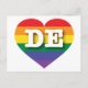 This postcard features a heart with a rainbow pride design and the bold, white, capital letters DE, the official abbreviation for Delaware, the first state. The reverse side of the postcard is blank, awaiting your personalized text or handwritten sentiments. Show your true colours, support marriage equality, and celebrate gay pride.