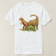 Original fine art design of Tyrannosaurus Rex, Stegosaurus and Brachiosaurus dinosaurs by artist Carolyn McFann of Two Purring Cats Studio printed on a quality and easily customizable adult t-shirt. Great gift idea for paleontologists and dinosaur fans of any age!