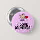 This cute little stick figure music design button has I Love Drummers quote. Great gift for percussion lovers. Play the drums in style.