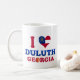 Great I Love Duluth, Georgia design with Georgian Flag in the shape of a heart. Great gift for anyone from Duluth, GA. This and more Georgian city, Duluth gift products at CityShirtsUSA.com