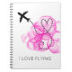 I Love Flying Heart Airplane Pink Clouds Fun Notebook