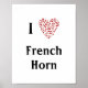 I Love French Horn Red Heart of Music Notes Poster