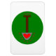 Cet impressionnant aimant présente une image d'un chat avec un coeur dessus et un texte qui dit "J'aime le jardinage". La pique a creusé l'écriture dans une belle pelouse circulaire verte.