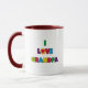 Text tshirts, mugs, cards, stickers, tote bags, bodysuits, and more with bright text that reads I Love Grandpa.