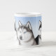 Design artistique original de trois chiens Husky sibériens par l'artiste Carolyn McFann de Two Purring Cats Studio imprimé sur un lave-vaisselle et une tasse jumbo à micro-ondes pour les amoureux de les chiens.