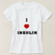 Simplistic “I” with a red heart in the centre and “Insulin” written in black at the bottom. In traditional “I Love” style.