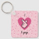 I Love K-pop Pink Finger Heart Pink Black Keychain