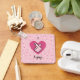 Use this adorable keychain to show off your love of K-pop. The wallet has a hand displaying a finger heart, and a cute, pink heart background. You can change the text to the name of your favourite person, group, such as BTS, BlackPink, Seventeen, Stray Kids, Twice, ATEEZ, Somi, Monsta X, etc. This would make a great gift for any K-pop lover!