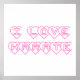 Your Karate girl will enjoy this cute Pink Hearts I Love Karate Poster Print. This girly custom martial arts poster makes a unique feminine martial arts gift for a birthday, holiday or belt rank promotion test for your daughter, sister, wife, mom , aunt or girlfriend. Customize it and change the size if desired.
