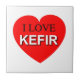 I love kefir. Kefir is a natural probiotic drink made from milk. Red heart image with text.