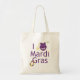 Carry the beads you catch and parades with this cool I love Mardi Gras tote bag.