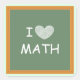This product displays a picture of a chalkboard with "I [heart] MATH" in white font. This product is a great gift for math teachers, college professors, college majors, or enthusiasts.