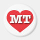 This magnet features a vibrant red heart containing the bold, white, upper case letters MT, the official abbreviation for Montana, the treasure state.