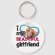 This lovely keychain is the ideal gift for any boyfriend or girlfriend in love on occasions such as Valentine's day or anniversaries. The caption reads "I love (heart) my BEAUTIFUL girlfriend" in black and dark pink modern fonts. Easily personalizable by adding a custom photo in a big heart-shaped blue frame.