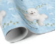Bichon Frise related custom matte wrapping paper using gold paw prints blue crystal unique original paintings, drawings added to original graphic designs. TO CUSTOMIZE & CHANGE DESIGN * CHANGE TYPE OR COLOR SCHEME * ADD YOUR FAVORITE IMAGE * ADD, CHANGE TEXT OR DELETE TO LEAVE IT BLANK.