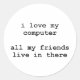 i love my computer classic round sticker