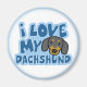 Extremely cute black and tan Dachshund gift! A kawaii Dachshund head is on the right, with funky blue two-toned text surrounding it reading, "I Love my Dachshund." VERY adorable doxie merchandise for dog lovers. We also have this design on a wide selection of other items, and in the red/brown coat colour as well.