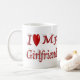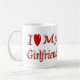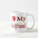 Mug with I heart my girlfriend in red 3D text. Available in several sizes and styles.