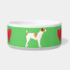 I love this bowl. It's nice and heavy and feels well made. I think Zazzle could make it even better however. This large bowl is actually on the small side for a large dog. I'd love to see one size larger. Also, if you want a colored background, there will be a rather thick strip of white on the top and the bottom. I wish I could have the entire face of the bowl printed in a color. The printing is crisp and clear and does a good job of showing off my Create With Photos running Portuguese Water Dog design.