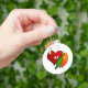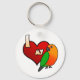 I Love my Jenday Conure Keychain for parrot lovers. A cute cartoon drawing of the orange and green bird sits just outside a big red heart. Literally reads, I heart my Jenday Conure. Unique parrot gift that tell the world how you feel about your pet bird.