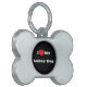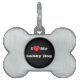 Bone Shaped Pet ID Identification Tag with Black Background Colour and White Lettering Colour printed with customizable template text phrase I ♥️ love My Labby Dog on Hats, Shirts and Pet Products by TheFabricSeal print on demand shop at Zazzle.com #ZazzleMade https://www.zazzle.com/store/thefabricseal