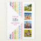 This colourful and stylish planner is set up ready for you to add your own photos and custom text. The template is set up for you to add 8 photos - 4 on the front and 4 on the back. You can also edit the sample text, which currently reads "I love my life and everyone in it". The front and back covers are further decorated with a geometric pattern of watercolor triangles in shades of blue and pink, green and yellow. Please browse our store for alternative styles or coordinating products.