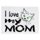 I Love My Mom text and a drawing of a funny cat with green eyes. Round format and tile pattern products, prints and gifts to celebrate Mother's Day. Funny gift bag for anyone