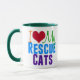 A cute gift for an owner that loves rescuing sweet felines from the animal shelter and giving them a loving home. I Heart My Rescue Cats is written in orange, red, green, blue, and purple for a fun, colourful mug for a kitty lover.