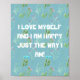 I love myself and I am happy just the way I am, poster. A poster lovers delight. Fill your home or office space with positive vibes. Makes a perfect gift for special occasion and your loved ones.