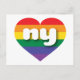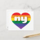 This postcard features a rainbow pride heart and the bold, white, lower case letters ny, a playful abbreviation for New York, the empire state. The reverse side of the postcard is blank, awaiting your handwritten sentiments or customized text. Show your true colours, support marriage equality, and celebrate gay pride.