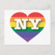 This postcard features a rainbow heart containing the bold, white capital letters NY, the official abbreviation for New York, the empire state. The reverse side of the postcard is blank, awaiting your handwritten sentiments or customized text. Show your true colours, support marriage equality, and celebrate gay pride.