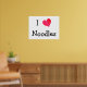 "I Love Noodles" using a lovely pink and red heart design. Besides changing the word defining what you love, on many of the products you can change text and background colour as well.