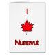 A variation on the I Heart theme. The image uses a Canadian maple leaf in place of the normal heart symbol. This design says "I (Canadian maple leaf) Nunavut. The lettering and leaf symbol are red with a black border or stroke. This makes a great gift for anyone who is a proud Canadian and Inuit.