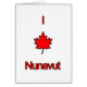 A variation on the I Heart theme. The image uses a Canadian maple leaf in place of the normal heart symbol. This design says "I (Canadian maple leaf) Nunavut. The lettering and leaf symbol are red with a black border or stroke. This makes a great gift for anyone who is a proud Canadian and Inuit.
