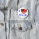I love Obama Button with bold blue lettering. Beautiful red, white and blue USA flag heart decorates this Barack Obama campaign Button.