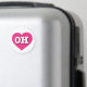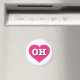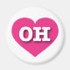 This magnet features a vibrant hot pink heart containing the bold, white, upper case letters OH, the official abbreviation for Ohio, the buckeye state.
