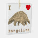 A cute walking pangolin, an illustration that will catch everyones attention. The pangolin is probably the cutest animal you’ve never heard about because sadly the pangolin is a very endangered species. Here’s a chance to fight the cause and highlight the plight of this beautiful animal that hits 10 on the cuteness scale. This cute pangolin in golden brown hues, shows the intricate body armour of the pangolin. The red love heart and brown slogan ‘ I Love Pangolin’ Can be customised using the template provided to create your own endangered wildlife Christmas tree decoration. Endangered Pangolin environmental animal art nature illustration by artist Catherine Sweetman