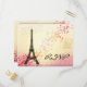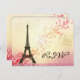 Eiffel tower with sprinkling of hearts fluttering down across a cream and pink background. Easily change text on this design. Matches invitation and postage.